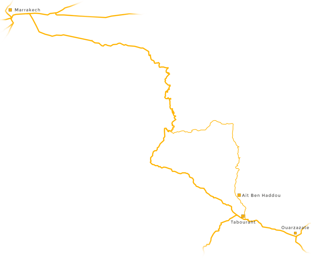 Transport Touristique : La plupart des visiteurs en provenance de Marrakech choisissent des agences pour leur voyage à Ait Ben Haddou. Après le col de Tizi N Tichka, deux itinéraires sont disponibles : la route nationale N9 ou la pittoresque vallée de l’Ounila. Certains choisissent une combinaison des deux pour une expérience diversifiée.