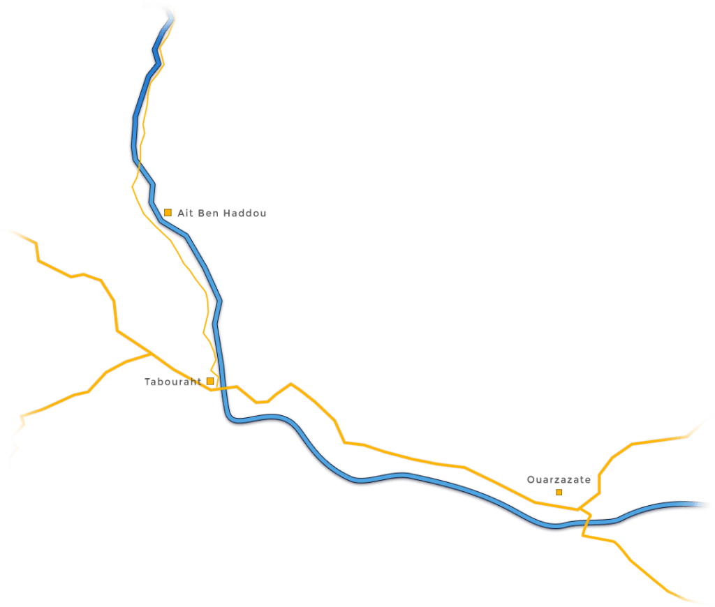 Bus Public : Montez à bord d’un bus en direction d’Ouarzazate ; tous les bus utilisent la route N9. Descendez au village de Tabouraht, à 30 km d’Ouarzazate, puis continuez vers Ait Ben Haddou en taxi ou en minibus.